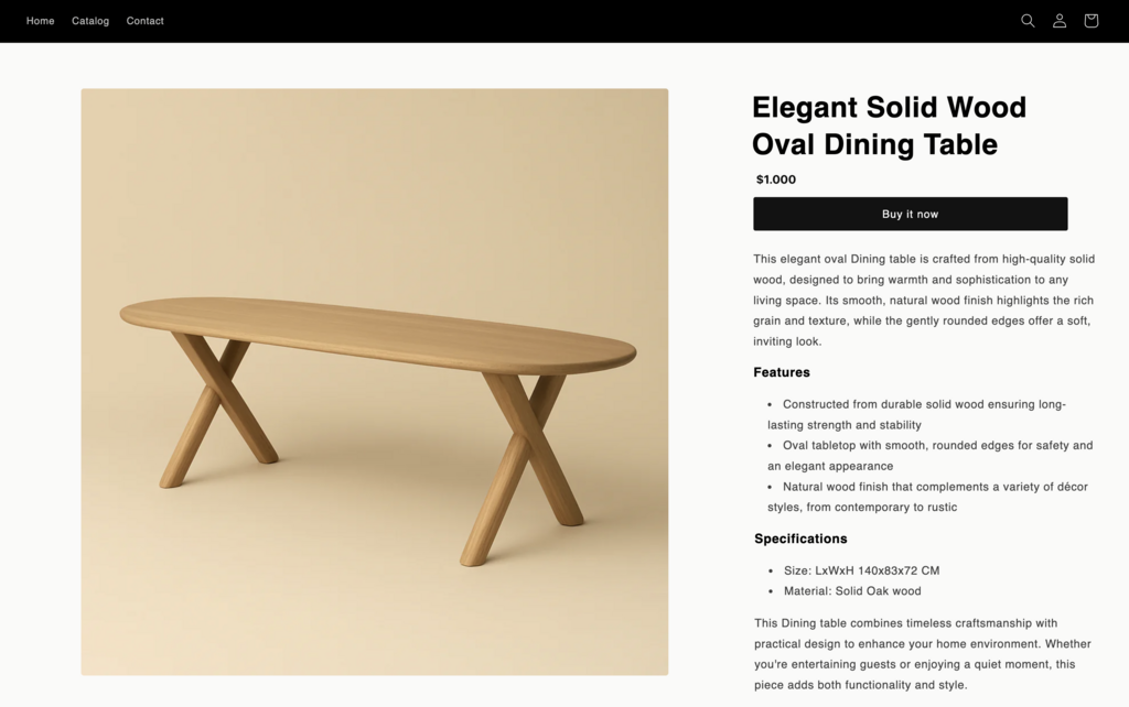 Instantly generate high-converting, on-brand content from product photos as part of a smooth product onboarding process including titles, descriptions, alt text, SEO metadata, and tags in your language of choice and according to your content guidelines. All without leaving Shopify. Easily generate product descriptions with precision, using a built-in product title generator and tools that deliver truly AI generated product descriptions tailored to your brand.